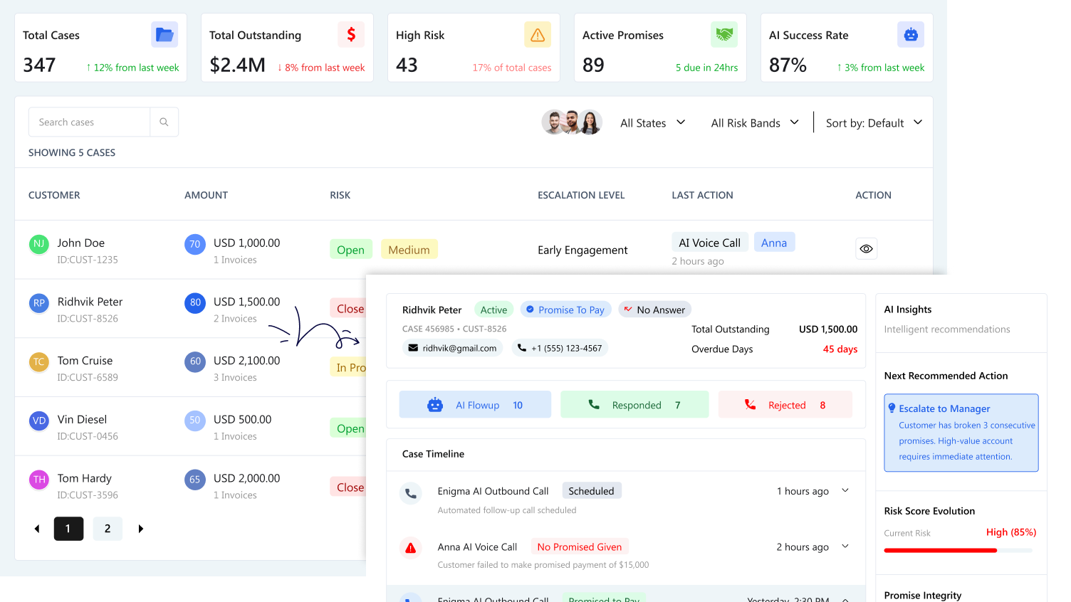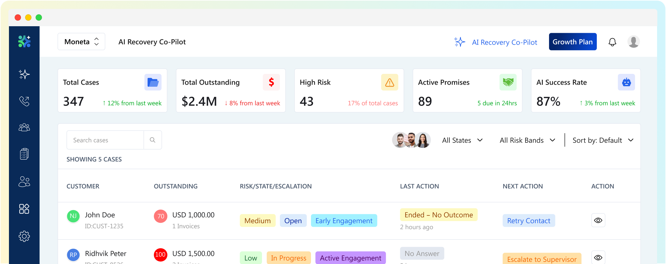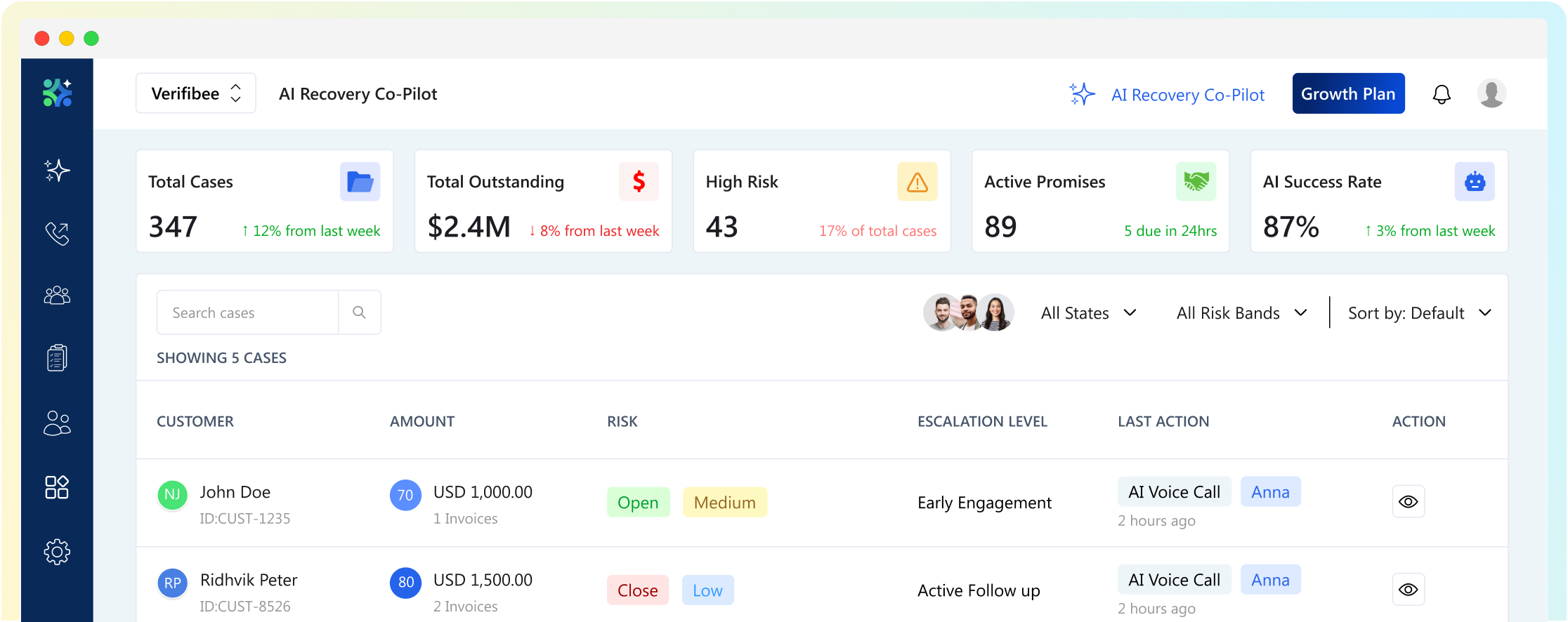 When a conversation needs empathy, negotiation, or judgement, recovery specialists step in seamlessly — fully informed and aligned to your standards.